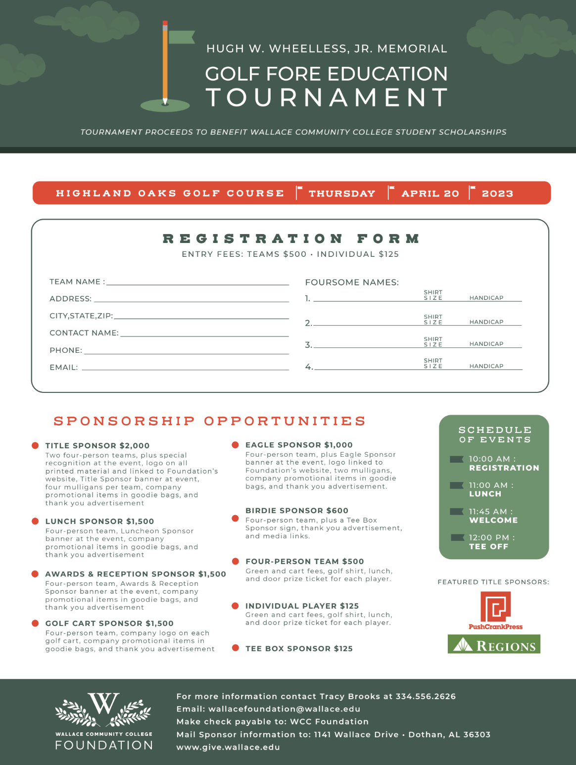 Wallace Community College Foundation’s Hugh W. Wheelless, Jr. Golf Tournament